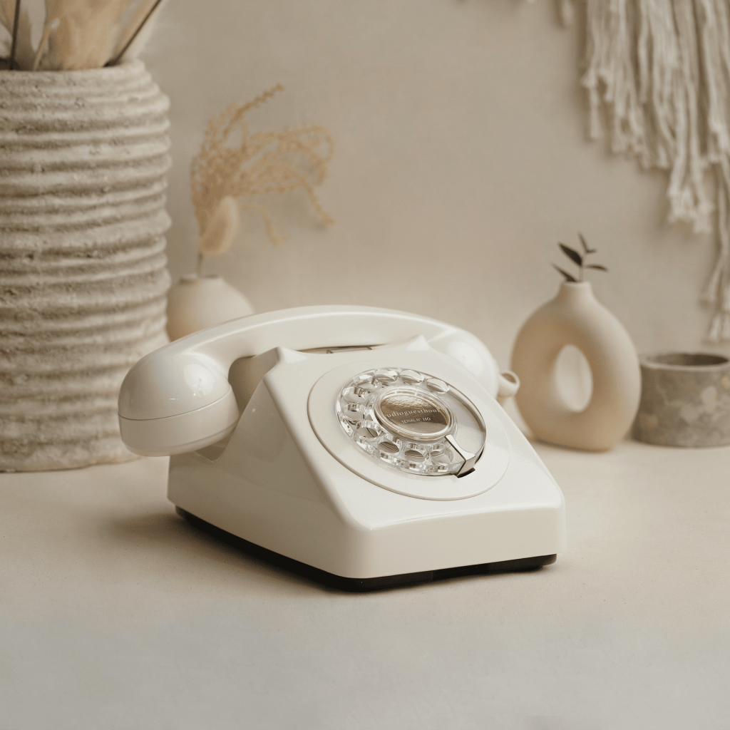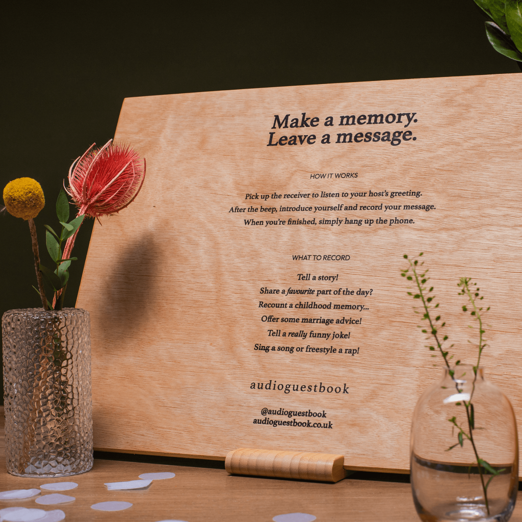 All our phones come with an elegant, handmade wooden sign to inspire guests with fun and thoughtful suggestions for their messages.
